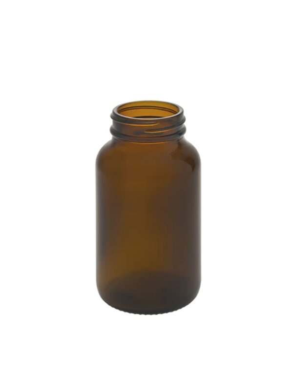 Brązowa butelka lub słoik szklany o pojemności 200 ml, z gwintem dostosowanym do zakrętki 45 mm. Wykonany ze szkła typu amber, które chroni zawartość przed światłem. Opakowanie przeznaczone do produktów spożywczych takich jak oleje, ekstrakty, przyprawy, zioła, proszki i syropy.