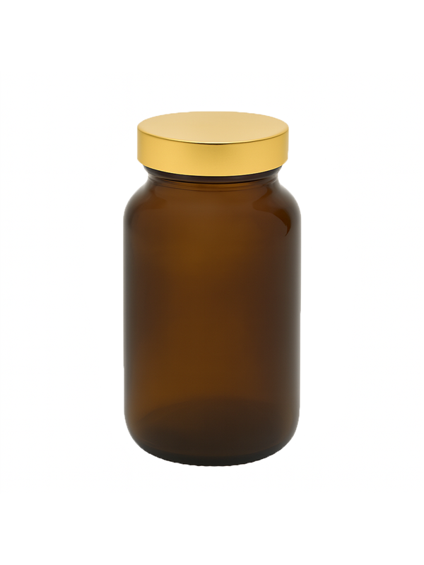 Słoik szklany 200 ml brązowy (amber) z nakrętką złotą UNISHELL – opakowanie spożywcze