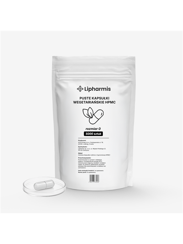 Lipharmis – Kapsułki wegetariańskie HPMC. Rozmiar 0 | 5000 sztuk.