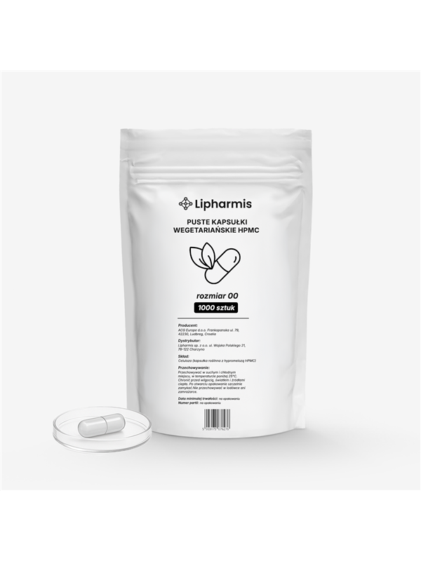 Lipharmis – Kapsułki wegetariańskie HPMC. Rozmiar 00 | 1000 sztuk.