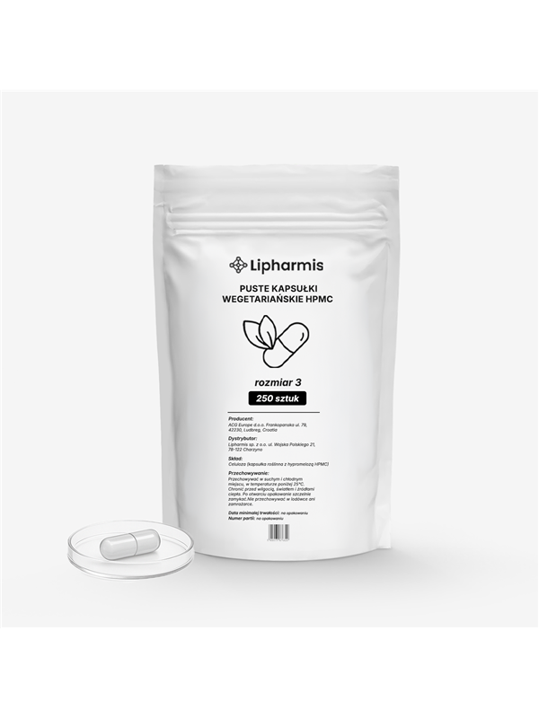 Lipharmis – Kapsułki wegetariańskie HPMC. Rozmiar 3 | 250 sztuk.